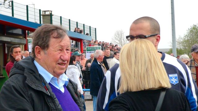 Guy Roux le parrain des championnats avec les joueurs vainqueurs de Bruges qui expriment leur joie (DR)