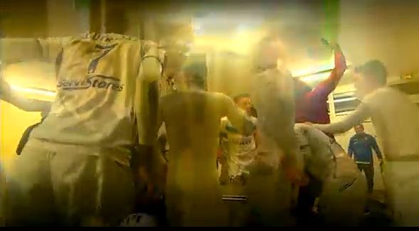 La joie des Auxerrois dans les vestiaires à l'issue du match (DR)