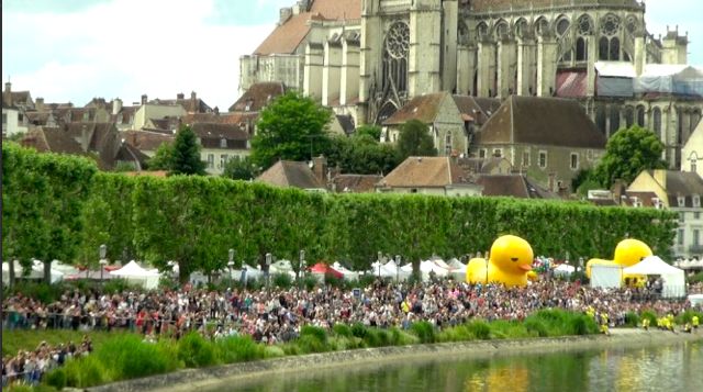 12.000 billets vendus, 27 gagnants. Le vainqueur de la Duck race, organisée sur la rivière Yonne, dimanche après-midi, par la Table Ronde d'Auxerre a remporté une voiture. Mais que ce fut dur ... les canards reculant devant la ligne d'arrivée... Il a fallu les pousser VIDEO