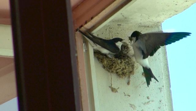 On se demande ce que pensent ces deux hirondelles rustiques de Thury des grands mats perchés qui jaillissent dans le paysage Poyaudin ? VIDEO